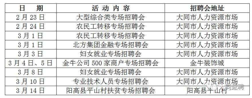 大同市2017年“春風行動”系列活動-招聘會時間安排